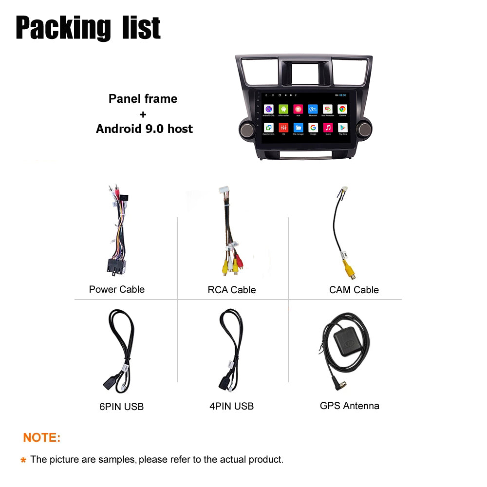 Android 10 Car Radio for Toyota Highlander 2009-2014 IPS Screen 9 Inch Rom 2GB 32GB Car Video Multimedia Player Support GPS 4G Network Carplay DSP Android Screen TS18 XY-093